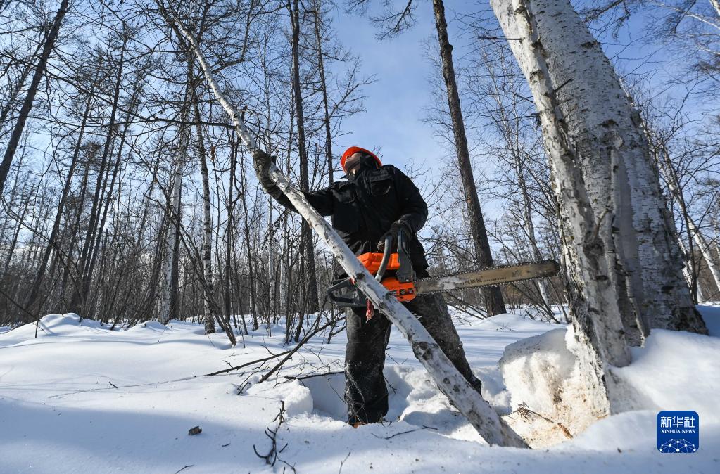2月23日,乌龙岱林场402工队职工温树昌在林区作业。
