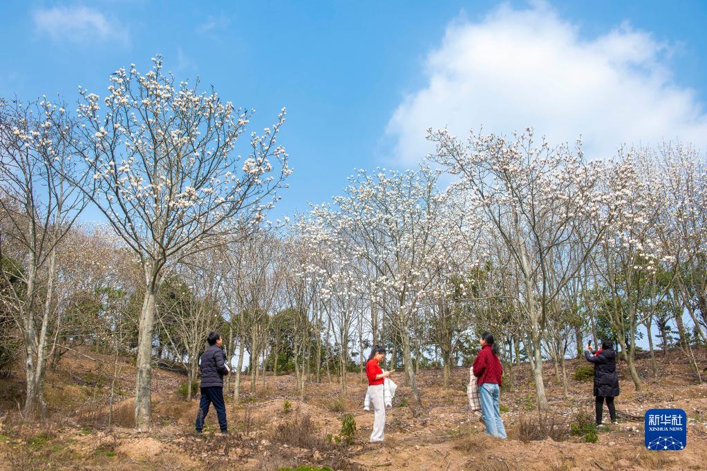 2月25日,游客在浙江省宁波市奉化区锦屏街道长岭村游玩赏花。