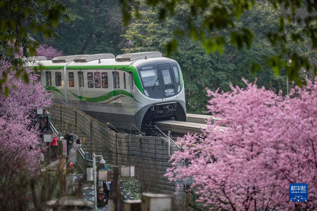 这是2月27日拍摄的运营中的重庆轨道交通2号线列车。