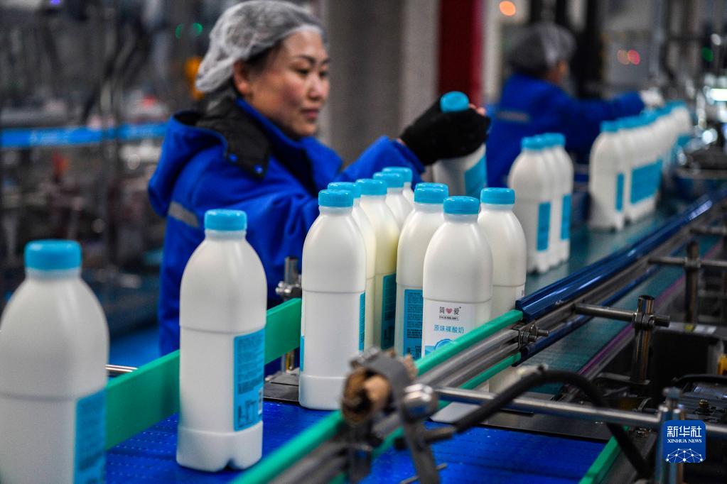 2月28日,在丰宁县一家乳制品生产企业包装车间,工人在生产线上忙碌。
