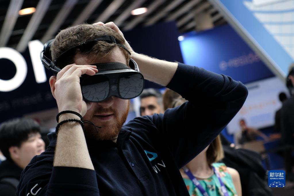 2月28日,一名男子在西班牙巴塞罗那举行的2023世界移动通信大会上体验虚拟现实技术。