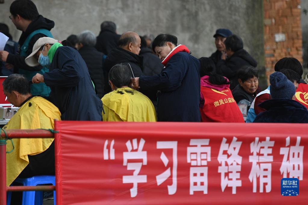 3月1日,志愿者在宁波市奉化区锦屏街道城西岙村免费为村民提供理发等民生服务。