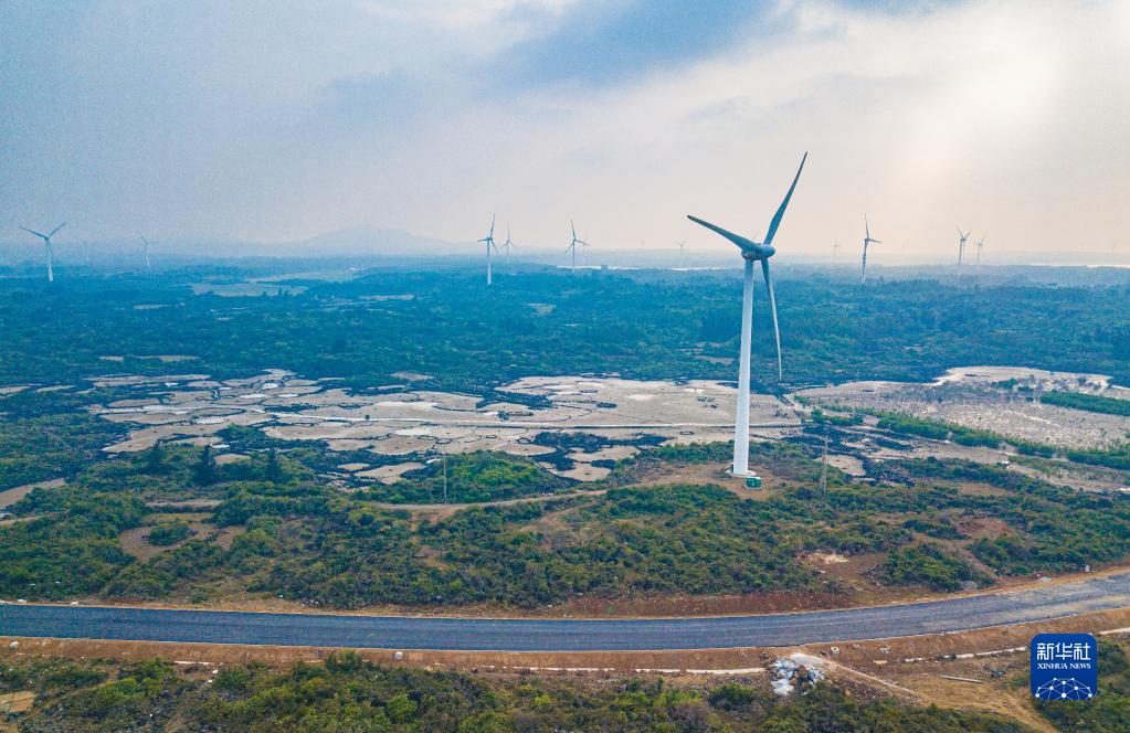 在海南省儋州市峨蔓镇拍摄的建设中的海南环岛旅游公路(无人机照片,2月24日摄)。