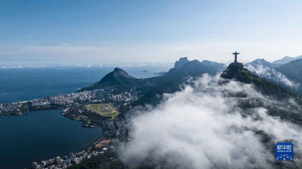 这是3月1日拍摄的巴西里约热内卢基督像和罗德里戈德弗雷塔斯湖(无人机照片)。