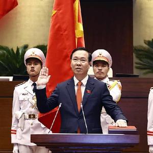 据越南国家电视台2日报道,越南第十五届国会第四次特别会议当天上午在首都河内召开,经投票表决,越共中央政治局委员、中央书记处常务书记武文赏当选为越南国家主席,武文赏随后宣誓就职。