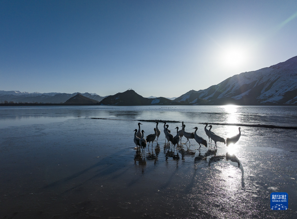 近日,西藏拉萨市各区县迎来降雪。群山被白雪覆盖,高原壮丽唯美。黑颈鹤、斑头雁等翩跹起舞,拉萨河谷生机盎然。
