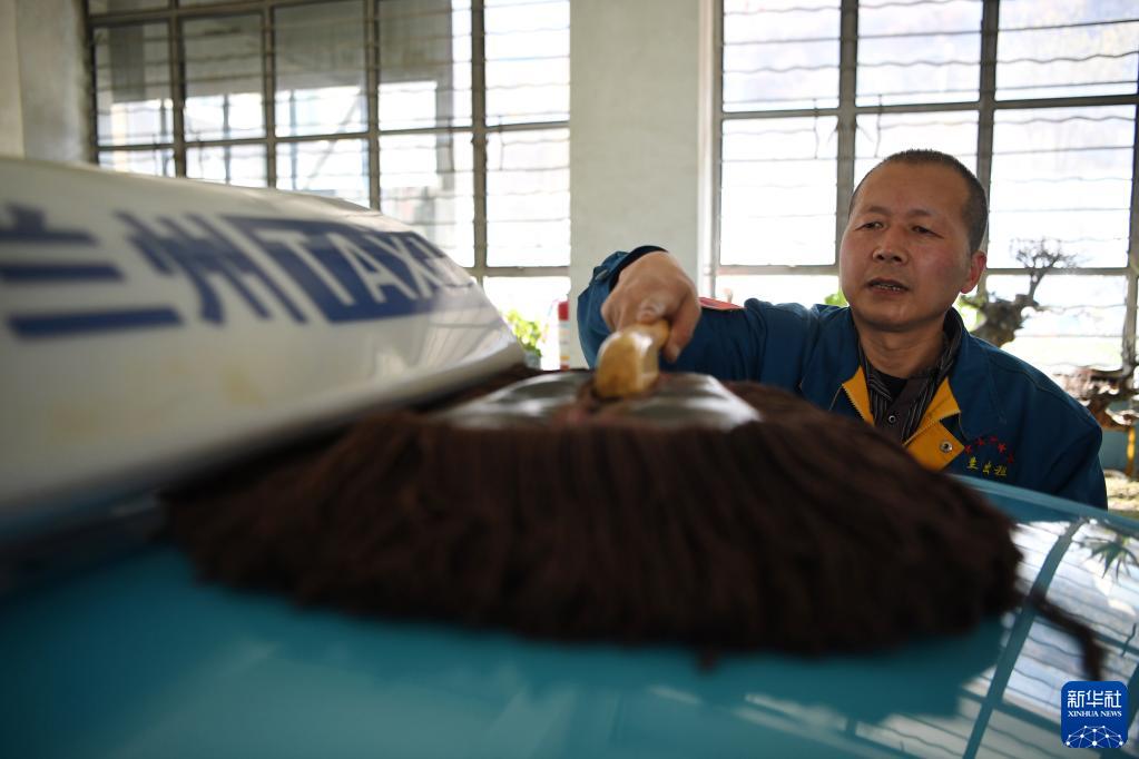 强汉红在出车前擦拭车辆(3月1日摄)。