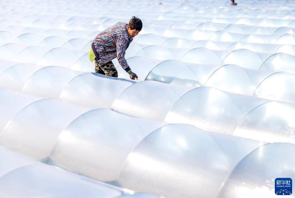 3月2日,唐山市丰南区岔河镇三神庄村的农民在田间给马铃薯棚膜覆土。