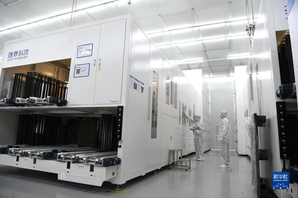3月1日,工作人员在“顶山—汊河”跨界一体化发展示范区的一家太阳能电池片企业生产线上忙碌。
