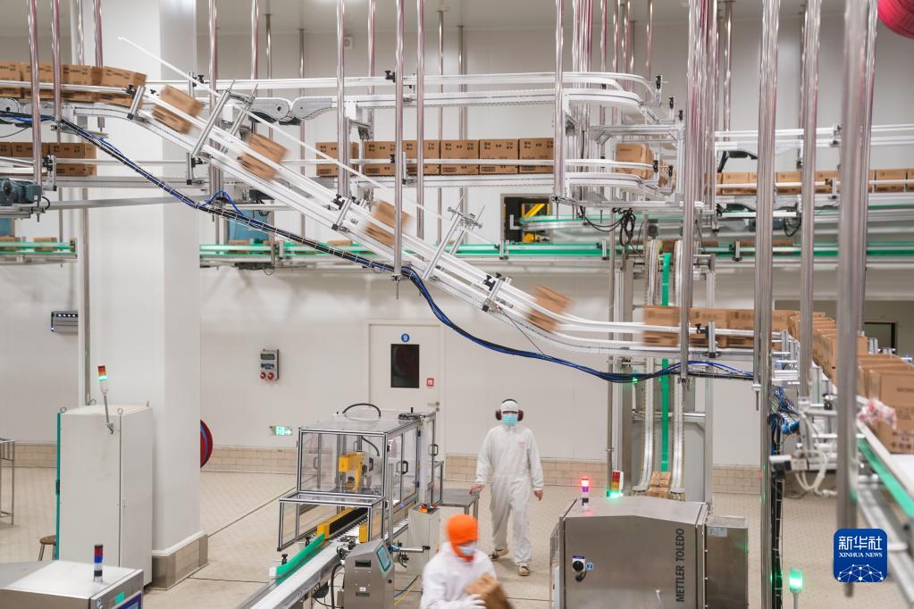 联合利华和路雪太仓生产基地车间内的立体输送网络(3月1日摄)。