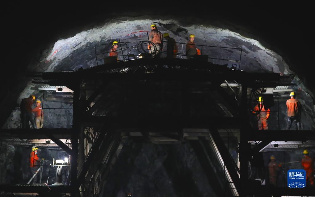 3月1日,在沈白高铁辽宁段新宾隧道内,中铁十九局施工人员在隧道内施工。