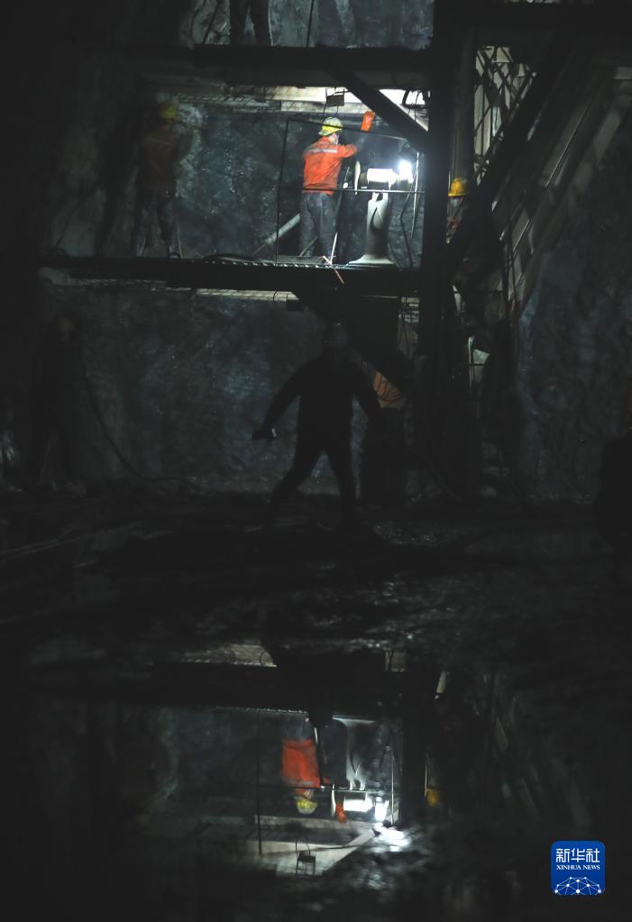 3月1日,在沈白高铁辽宁段新宾隧道内,中铁十九局施工人员在隧道内施工。