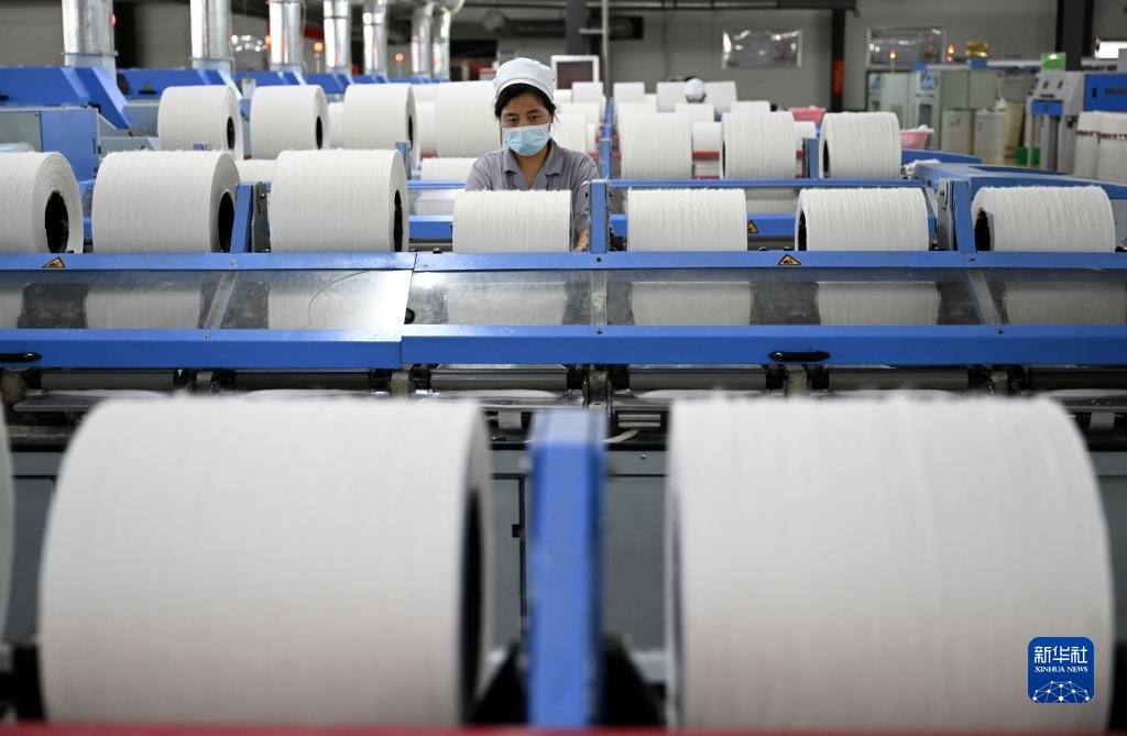 3月2日,在河南省尉氏县一家纺织企业车间里,工人在生产线忙碌。
