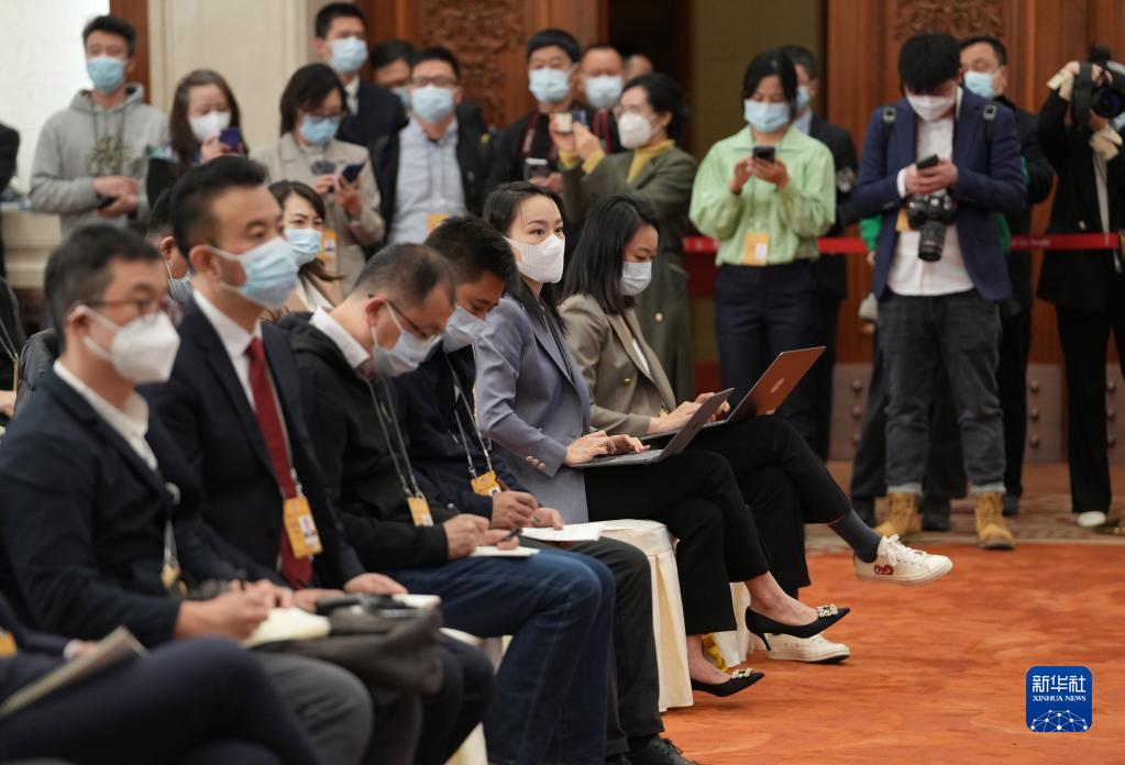 3月3日,全国政协十四届一次会议新闻发布会在北京人民大会堂举行,大会新闻发言人郭卫民向中外媒体介绍本次大会有关情况并回答记者提问。这是记者在发布会上采访。