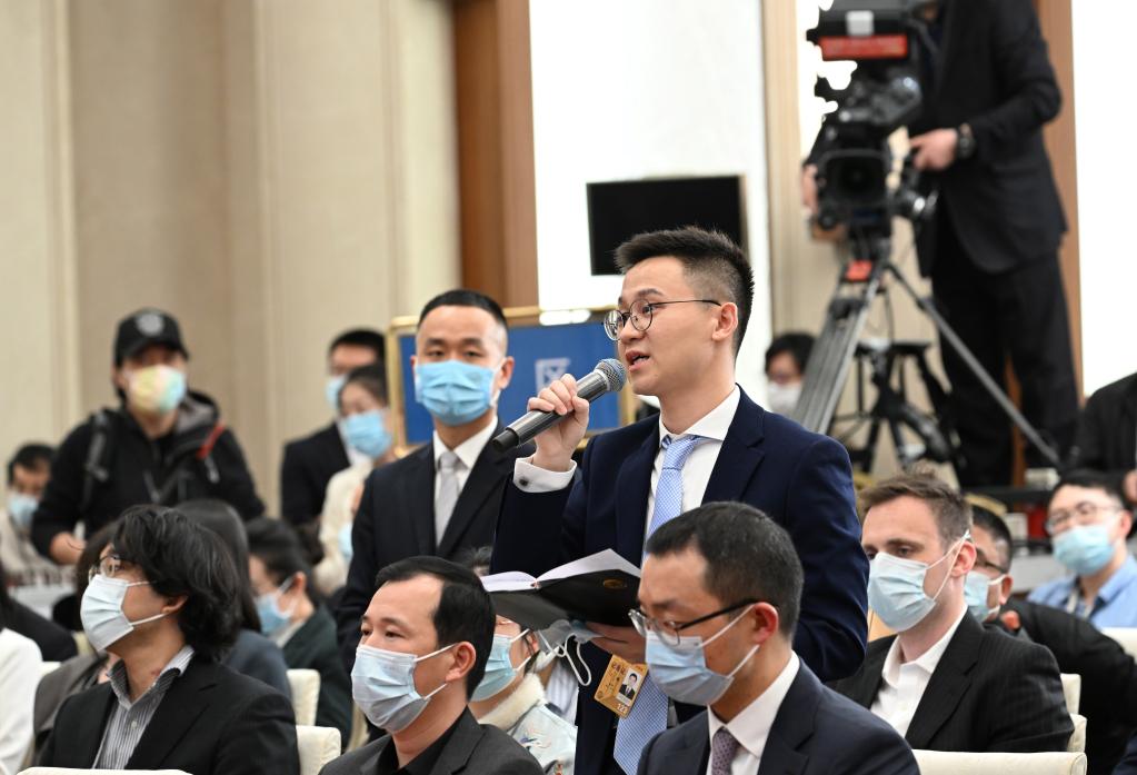 3月3日,全国政协十四届一次会议新闻发布会在北京人民大会堂举行,大会新闻发言人郭卫民向中外媒体介绍本次大会有关情况并回答记者提问。这是新华社记者在发布会上提问。