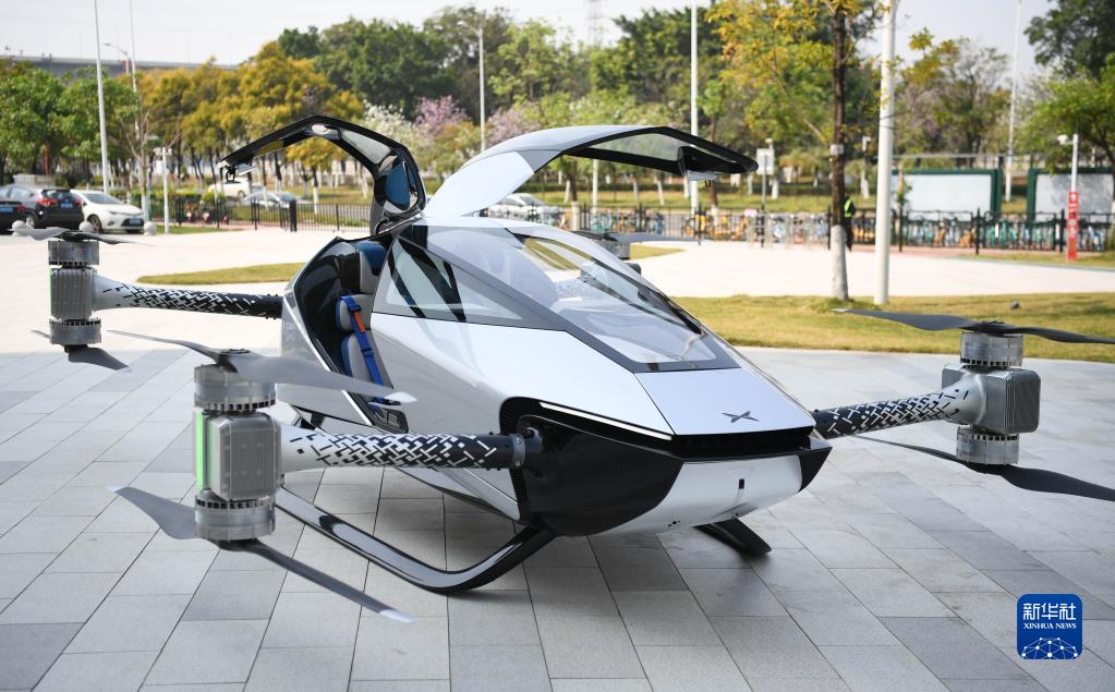 在广州市番禺区小鹏汇天总部静态展示的飞行汽车旅航者X2(2月24日摄)。