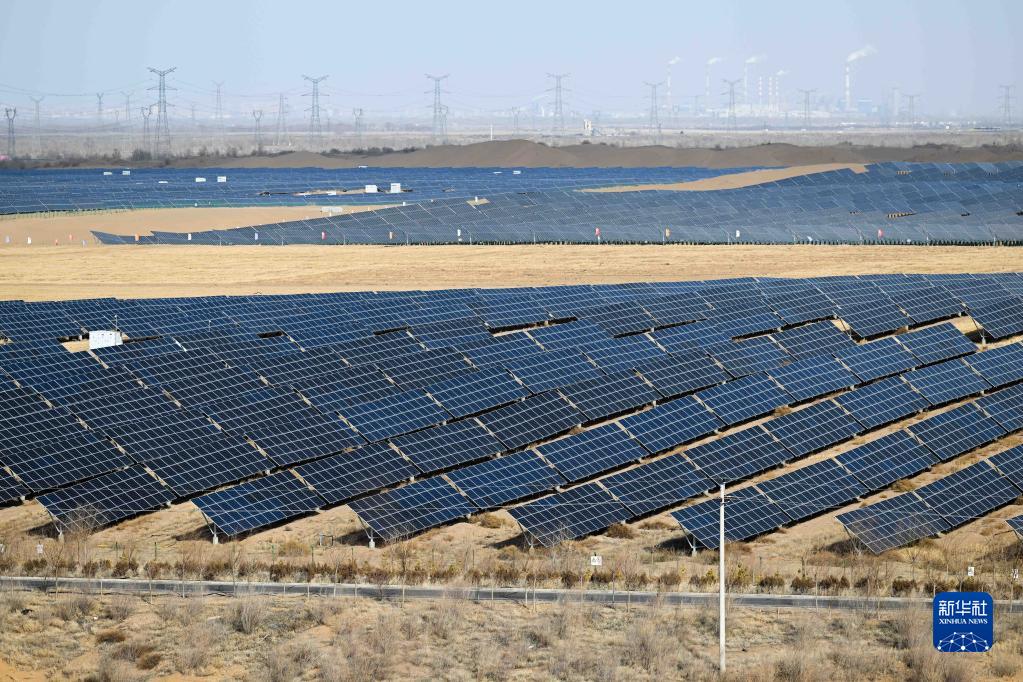 3月3日在内蒙古鄂尔多斯市达拉特旗拍摄的光伏发电基地。
