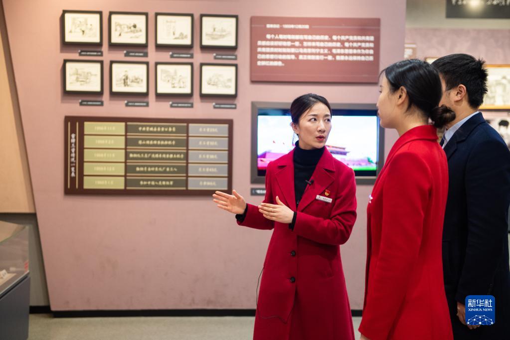 3月1日,在湖南雷锋纪念馆,张璐琪(左)在指导新聘宣讲员讲解雷锋生平事迹。