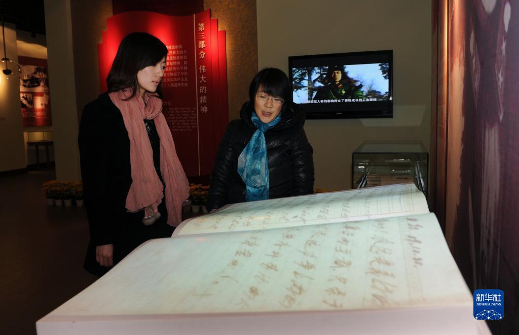 张璐琪(左)在湖南雷锋纪念馆里向母亲谭荒芳请教讲解技巧(2012年2月21日摄)。