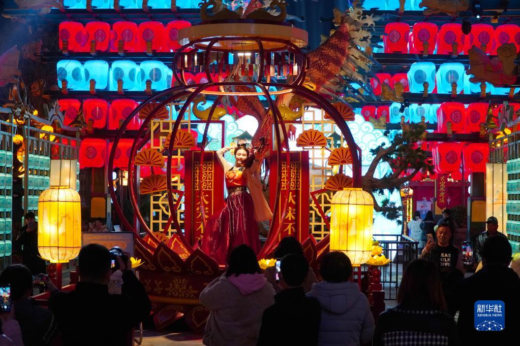 2月27日晚,游客在位于山东省东平县的大宋不夜城观看表演。大宋不夜城是山东省东平县集古镇风情与宋文化街区于一体的全新旅游项目。大宋不夜城从今年1月7日正式向游客开放以来,已吸引游客超过110万人次,对繁荣夜经济、拉动消费起到有效促进作用。