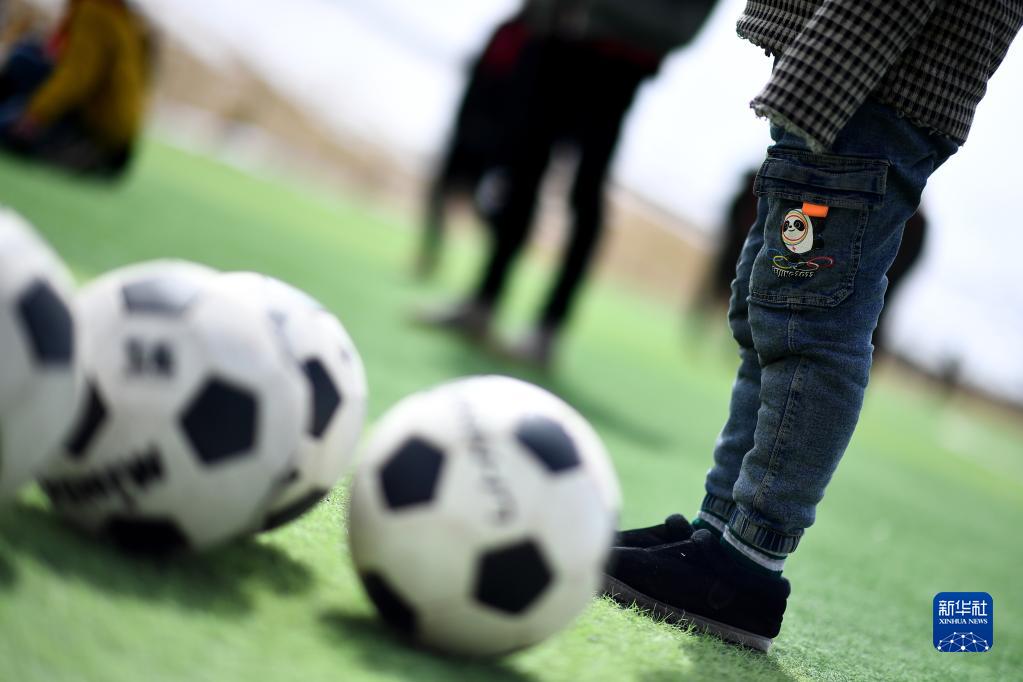 3月1日,在玉树州治多县,吉尕小学一名学生观看场上训练。