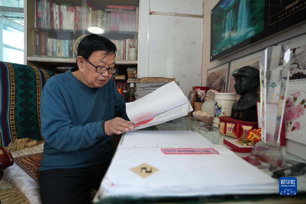 3月4日,“百姓雷锋”姚恩亮在家中整理制作黑板报材料。