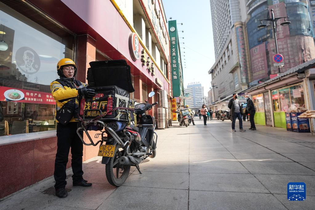 3月3日,“百姓雷锋”卢旭东在取餐食,准备给顾客送去。