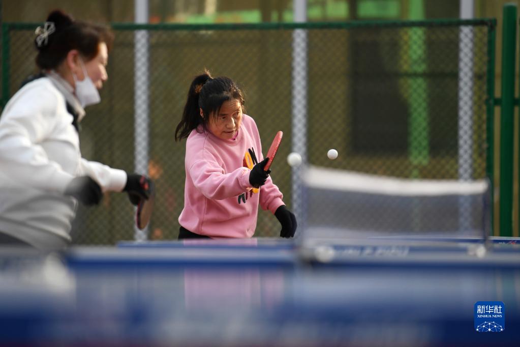 3月3日,市民在甘肃省兰州市体育公园的室外乒乓球场打球。
