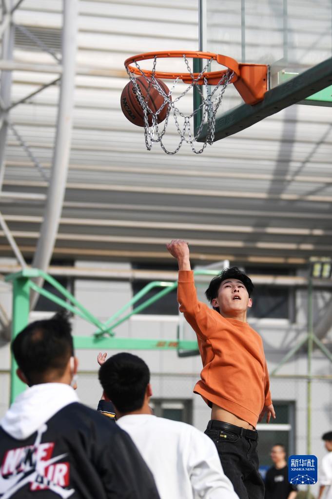 3月2日,几位篮球爱好者在甘肃省兰州市体育公园的室外篮球场打球。