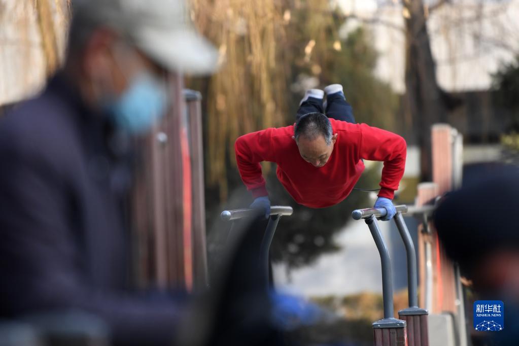 3月3日,一位市民在甘肃省兰州市体育公园内健身。