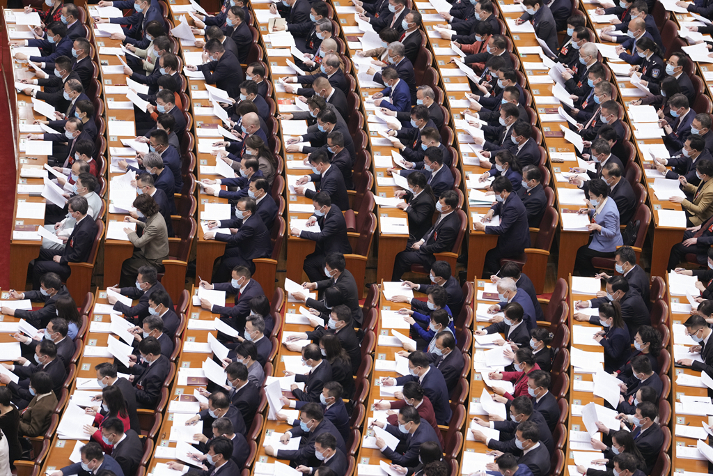 3月5日,第十四届全国人民代表大会第一次会议在北京人民大会堂开幕。这是代表们在认真听会。