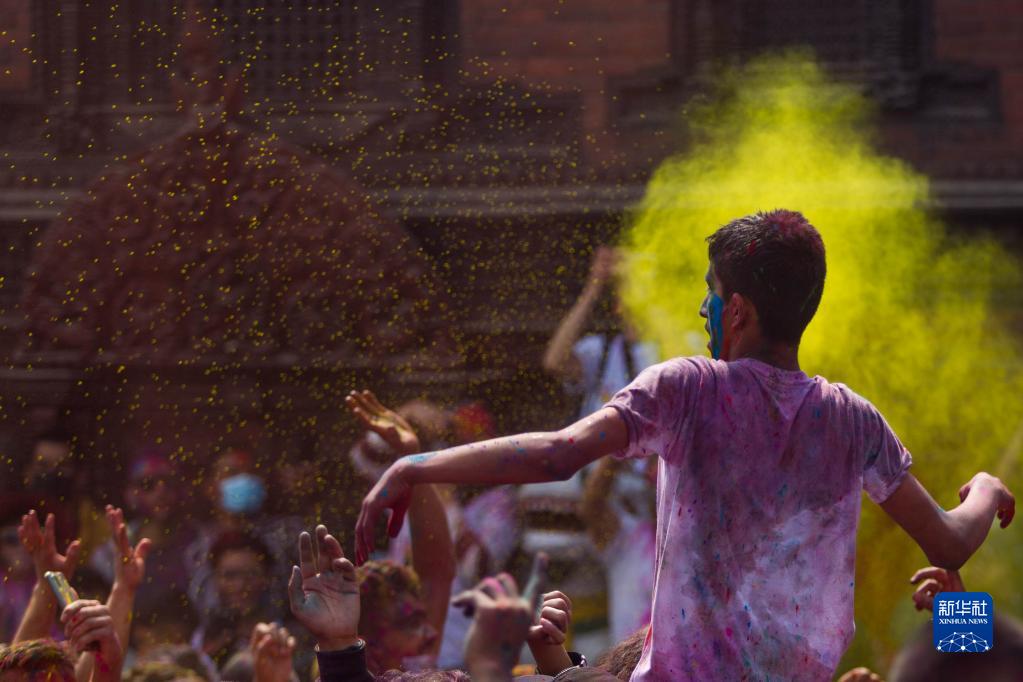 3月6日,人们在尼泊尔加德满都参加洒红节庆祝活动。