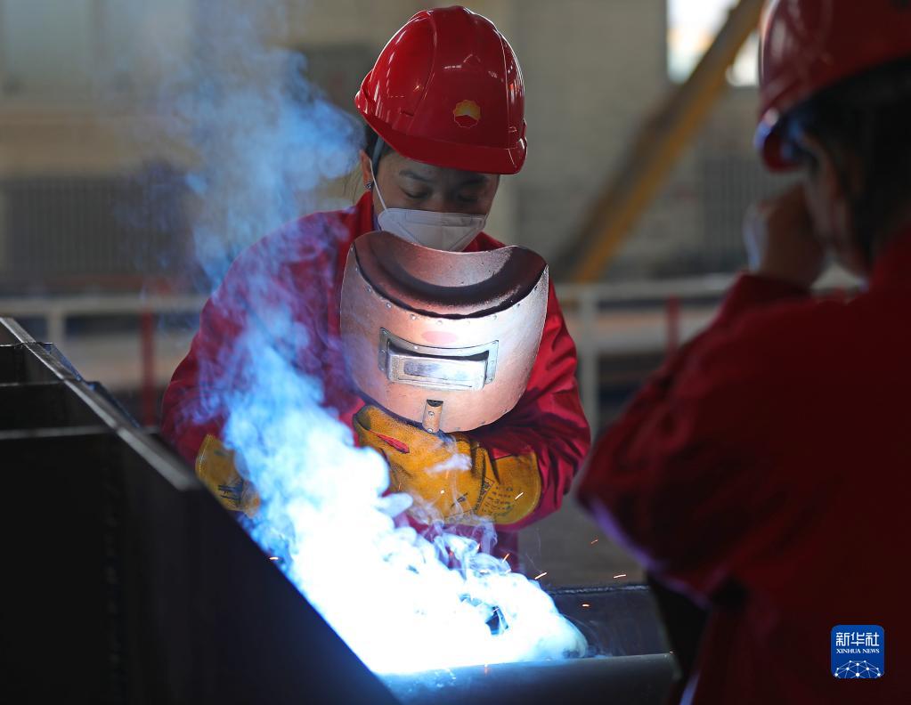 2月27日,李文静在焊接车间作业。