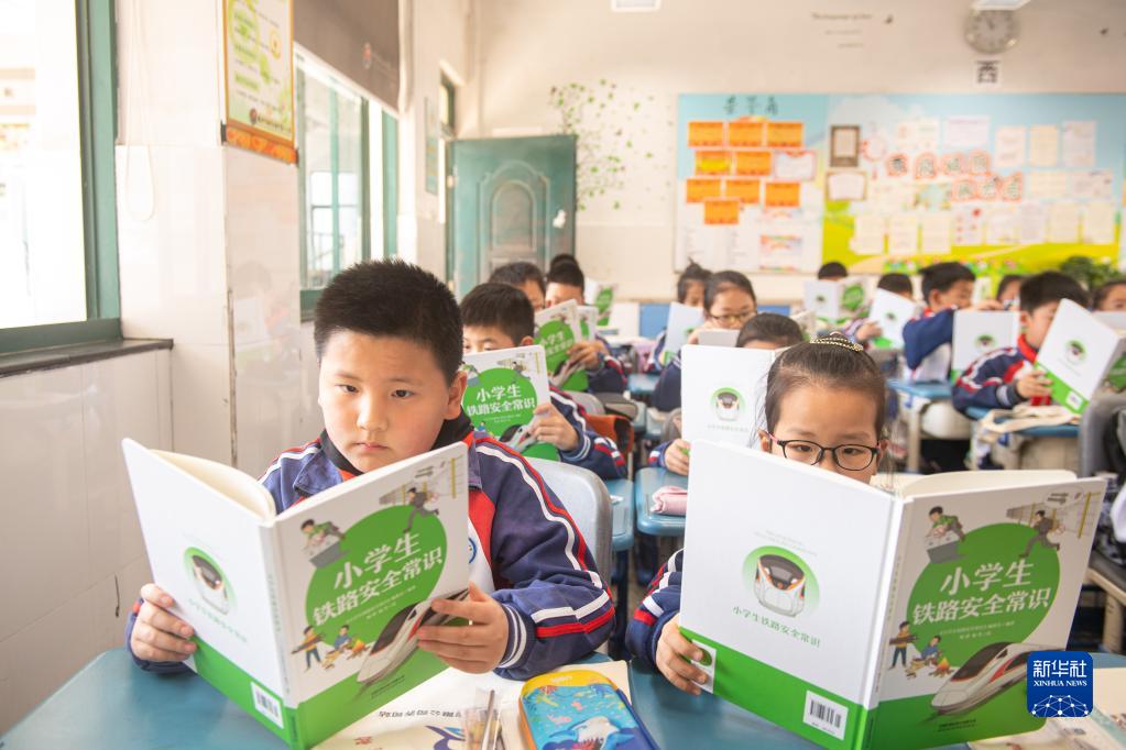 3月7日,杭州市临平第一小学学生在教室内阅读小学生铁路安全常识读本。