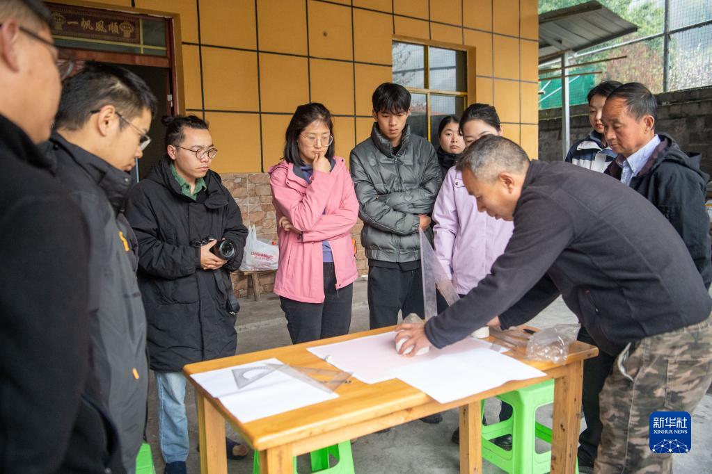 2023年3月6日,在位于重庆市武隆区的白马航电枢纽文物保护项目前方考古队驻地,燕妮(中)与工作人员在对“重庆市第三期田野考古培训班” 学员进行考古技能培训。