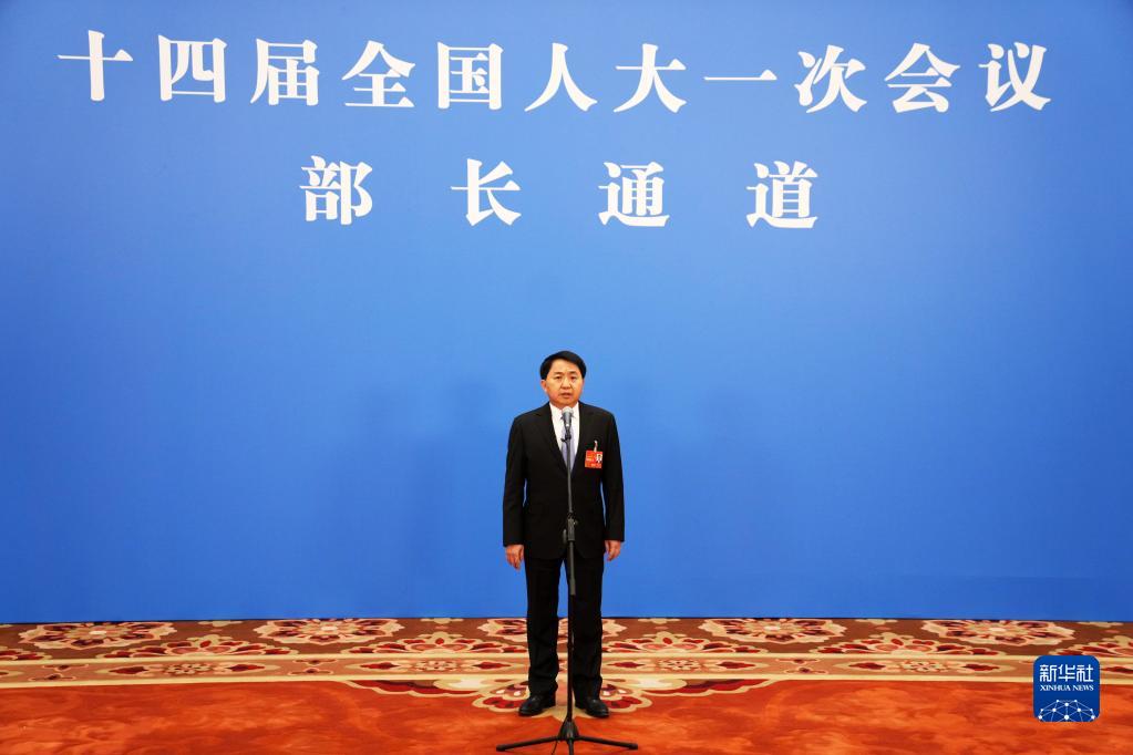 3月7日,第十四届全国人民代表大会第一次会议举行第二场“部长通道”采访活动。这是国家市场监督管理总局局长罗文接受媒体采访。