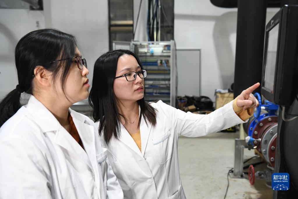 3月3日,中科院合肥物质科学研究院强磁场科学中心高级工程师唐佳丽(右)与同事在工作中。