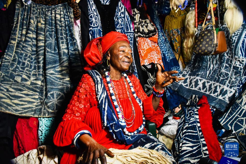 恩多普是主要流行于喀麦隆西部大区的一种布料,可以制成衣物、帽子和项链等。制作过程中,先用墨线在白色棉布上绘制纹样,再用干燥的棕榈叶脉做线把纹样扎起来,经靛蓝的植物染料浸染后,拆去棕榈叶脉,便得到蓝底白纹的恩多普。如今,众多喀麦隆妇女投入恩多普制作领域,这不仅改善了她们的生活,也推动了文化的传承。