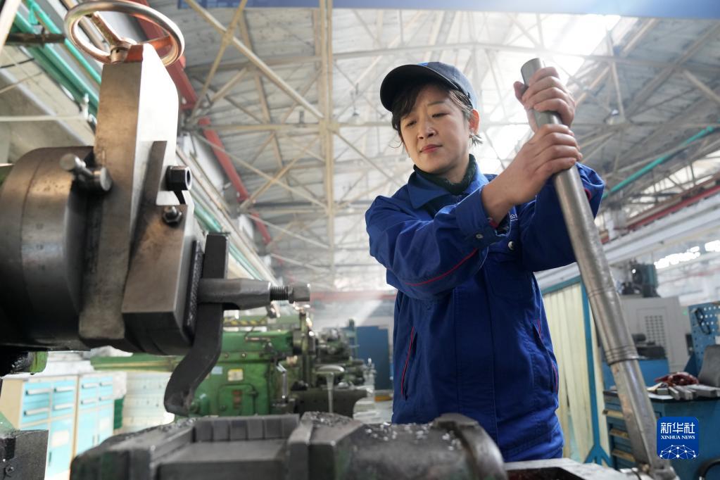 3月6日,哈电集团哈尔滨电机厂有限责任公司刨工张淑卫在作业中。
