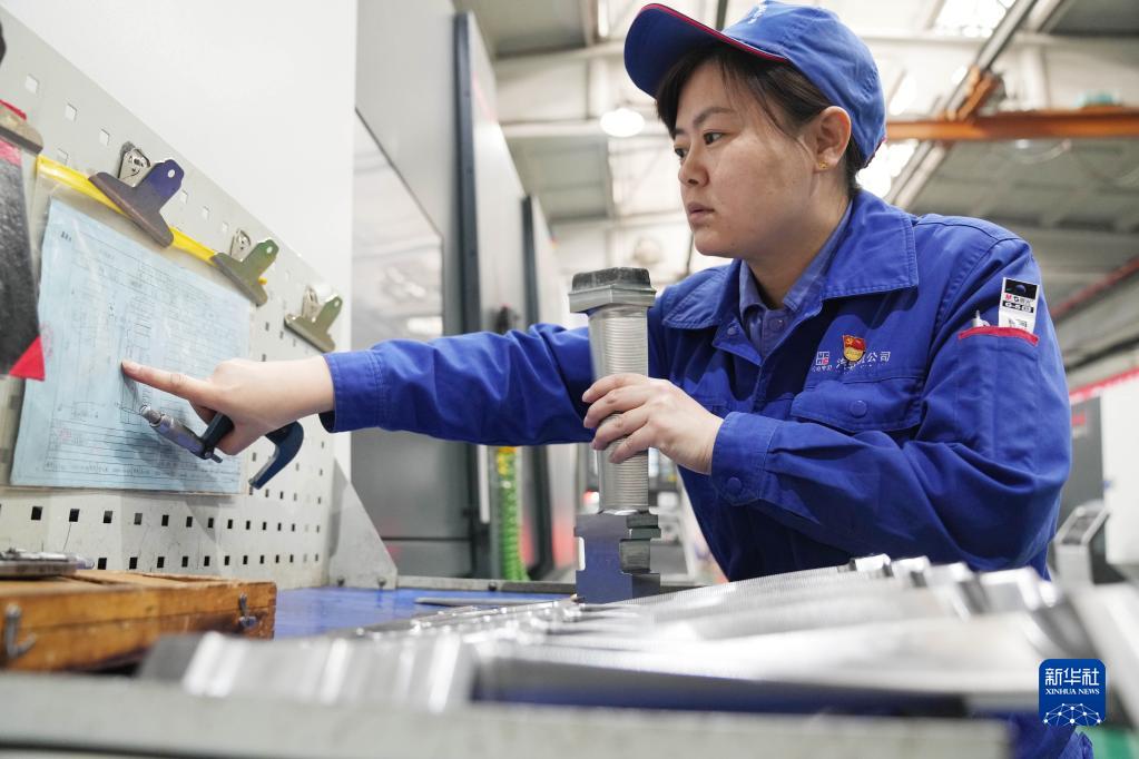3月7日,哈电集团哈尔滨汽轮机厂有限责任公司数控钳工葛丹在作业中。