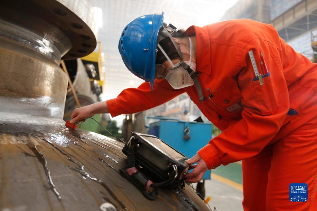 3月6日,哈电集团哈尔滨锅炉厂有限责任公司探伤工李红在作业中。