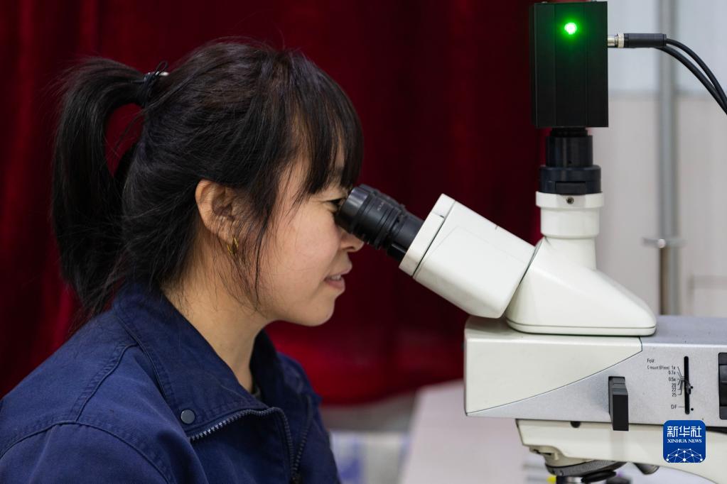 3月7日,在黑龙江省七台河市,宝泰隆新材料股份有限公司焦化厂工人邱玉敏在化验室工作。