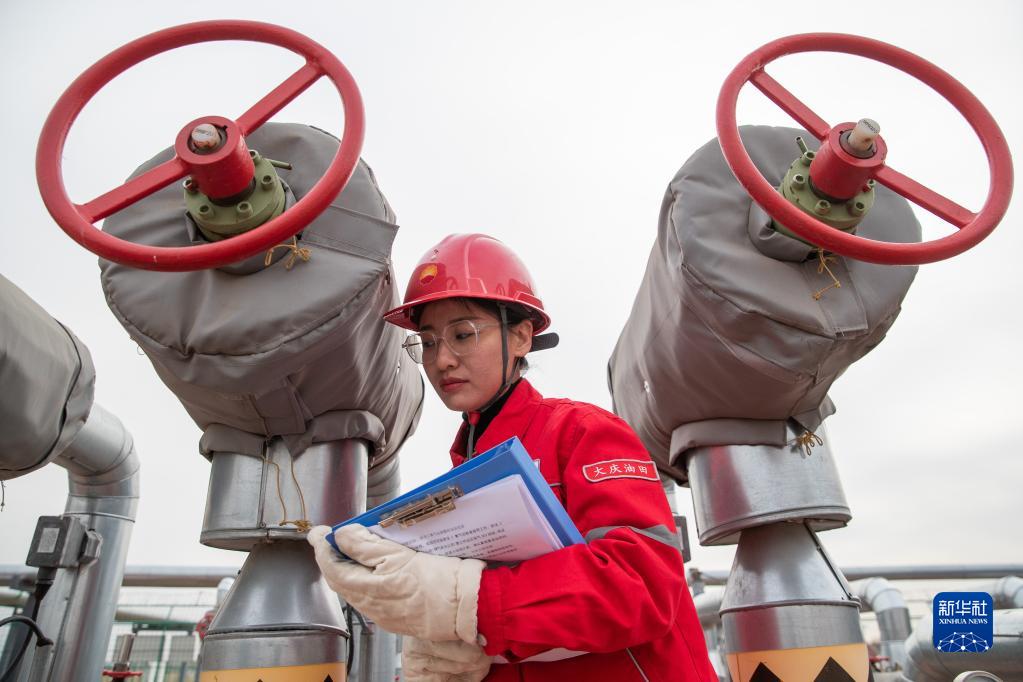 3月7日,在大庆油田采气分公司(储气库分公司)第一作业区徐深1集气站,采气工王超博通过听气流声分辨天然气瞬时流量。