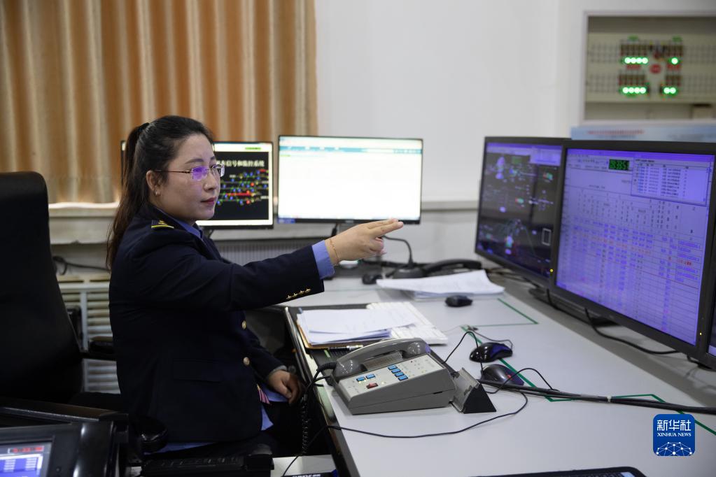 3月7日,在大庆车务段大庆西站行车室,值班员张俊在指挥车辆进站。