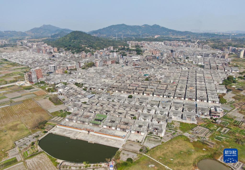 广东省普宁市大坝镇白坑村的传统建筑具有鲜明的潮汕民居特色。民居的结构、高度,巷道宽度均统一。从空中俯瞰,横平竖直、整齐划一,村庄布局犹如大地上的棋盘。