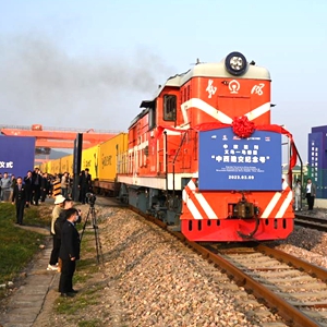 3月9日,义乌—马德里“中西建交纪念号”中欧班列从浙江义乌铁路西站开出。