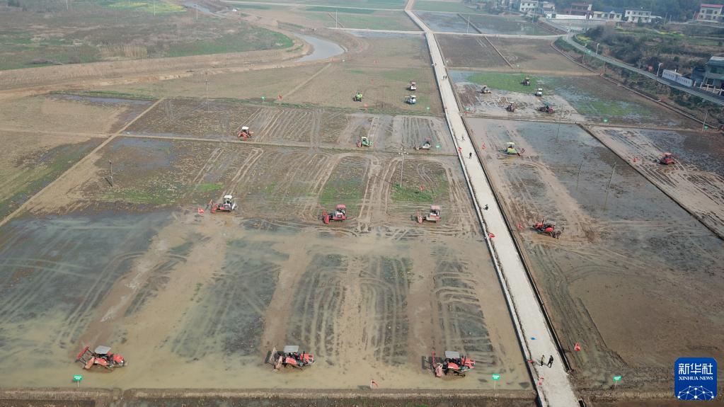 当日,在湖南省湘潭市湘乡市举行的湖南省供销合作社农业社会化服务大联盟成立仪式现场,种粮能手在200亩高标准农田里操作农机设备进行“比武”,通过拖拉机犁田、旋耕机翻耕、植保无人机飞防等农机技能比赛提升农业服务水平,助力春耕备耕。