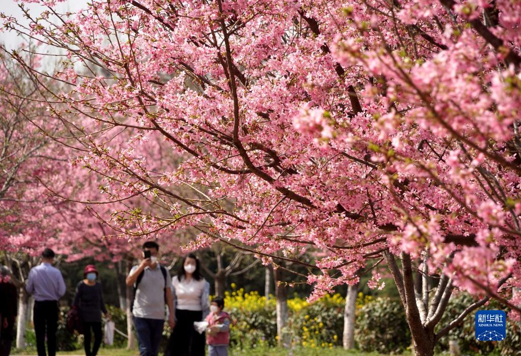 当日,2023年河南·荥阳第八届黄河樱花节在荥阳市古柏渡丰乐樱花园开幕,园内绽放的早樱吸引市民前来赏花游玩。古柏渡丰乐樱花园有80余种樱花,约12万余株,早、中、晚樱次第开放,赏花期从3月持续至4月中旬。