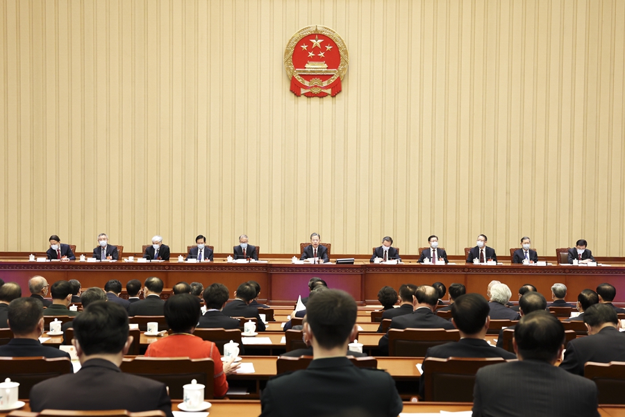 3月10日上午,十四届全国人大一次会议主席团在北京人民大会堂举行第五次会议。主席团常务主席赵乐际主持会议。