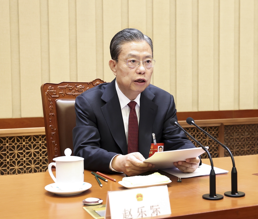 3月10日上午,十四届全国人大一次会议主席团在北京人民大会堂举行第五次会议。主席团常务主席赵乐际主持会议。